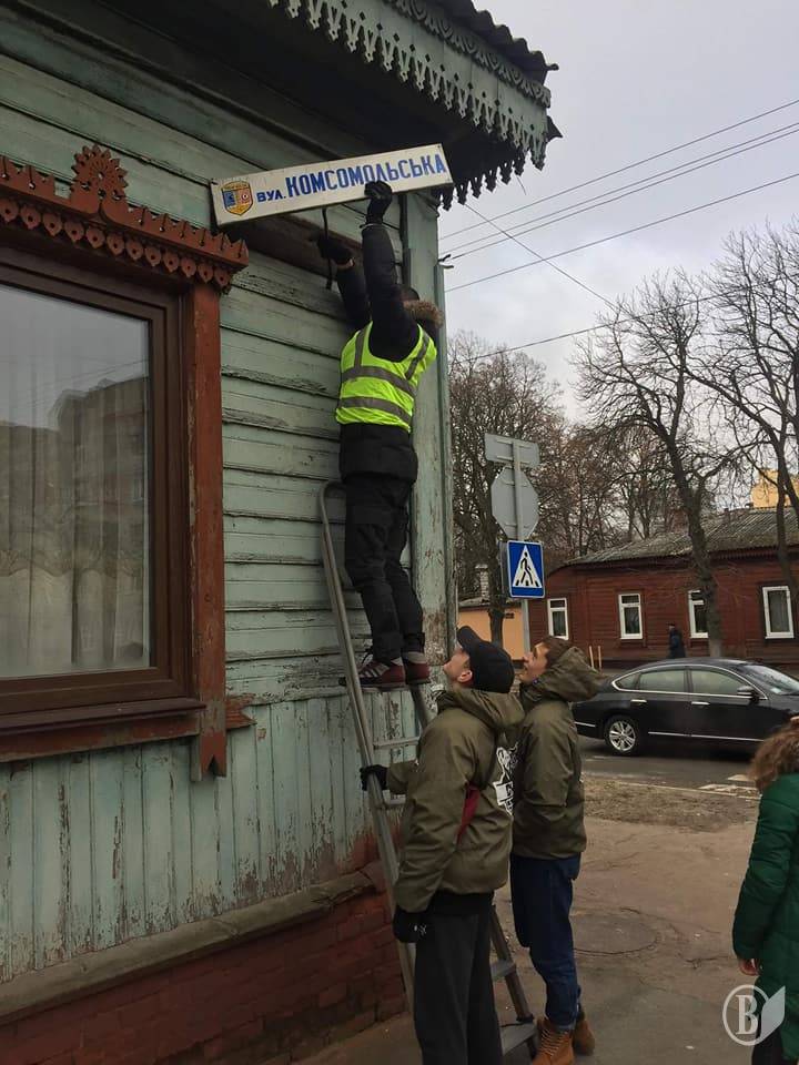 Табличку з написом "Комсомольська" активісти пообіцяли доправити у міську раду, мовляв, там якраз відповідна аудиторія.