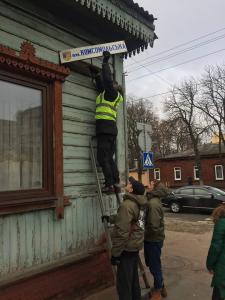 А начальник управи ЖКГ Ярослав Куц отримав у подарунок на згадку табличку з написом «ул. Воровского» з будинку №7.