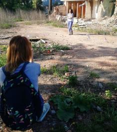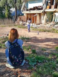 Діти фотографуються на фоні руїн. Його знімають гості міста. Можливо і пропагандистські канали...