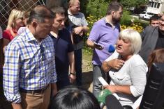 Ще одним пунктом в програмі візити Лідера Радикальної партії став гуртожиток на вулиці Текстильників (Шерстянка), де внаслідок зливи і підтоплення фундаменту в стіні з’явилася тріщина. Олег Ляшко категорично відкинув ідею ремонту будівлі і запропонував надійніший варіант – відселення мешканців в нові квартири і знесення гуртожитків, яким по 60 років(поруч ще таких два), аби не сталося трагедії.
