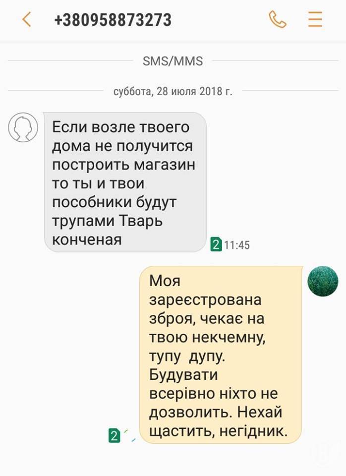 Там же він розмістив нібито скріншот листування через SMS із невідомою особою.