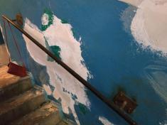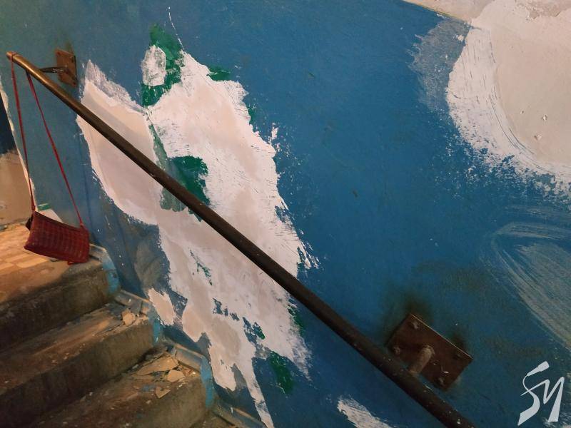 А маляри ЖЕКу-10 першим ділом зашпаклювали оббиту до цегляної кладки стіну на першому поверсі. Утворився мало не якийсь корабель-буксир з матросами.