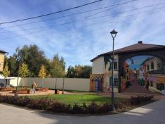 За півроку крок за кроком тут облаштований газон, висаджений ялівець скелястий, липи – причому вже доволі дорослі деревця, зроблена жива огорожа з кущиків барбарису. Важливо також, що проведено освітлення й встановлені ліхтарі, зроблений автоматичний полив, замощені плиткою пішохідні доріжки, встановлено три суцільні паркові лави та урни. Фінальним акордом стала поява муралів на фасадах двох прилеглих до міні-скверу будинків.