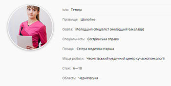 Старша медична сестра відділення клінічної онкології та гінекології КНП «Чернігівський медичний центр сучасної онкології» Тетяна Шолойко – серед кращих у Всеукраїнському конкурсі серед медсестер та медбратів.