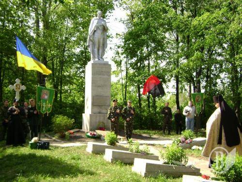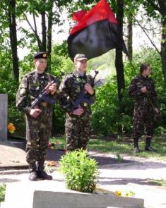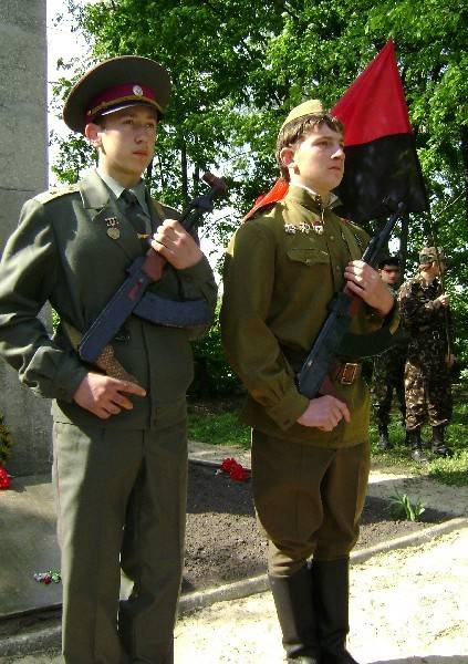 Импровизированный Почетный караул возле памятника погибшим сделали старшеклассники местной школы, по обе стороны памятника с Государственным и красно-черным флагами стали черниговские националисты (местная власть в лице председателя сельсовета Понамарева М. И. Государственный Флаг проигнорировала и на запад не принесла).