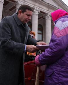 Автомобілі вручив інвалідам голова Чернігівської ОДА Володимир Хоменко на центральній площі міста Чернігова.