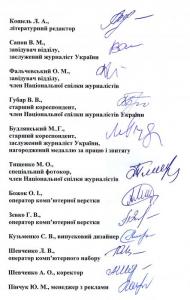 Автори листа акцентовано твердять: стільки-то чоловік керує газетою, стільки-то творчих працівників (ніби керівництво не займається збором і підготовкою до друку інформації, творчим процесом загалом), а 8 чоловік – технічних працівників. Що, на їх думку, становить більшість колективу. По-перше, не більшість. По-друге, не 8, а 6. Та облишмо арифметичні неточності. Без нинішніх «технічних» працівників, робота яких далеко не позбавлена творчих засад, не обійтися не тільки нашій газеті. Отож не слід би було отак – на чорних і білих… Громадська організація якраз і протидіятиме цьому.