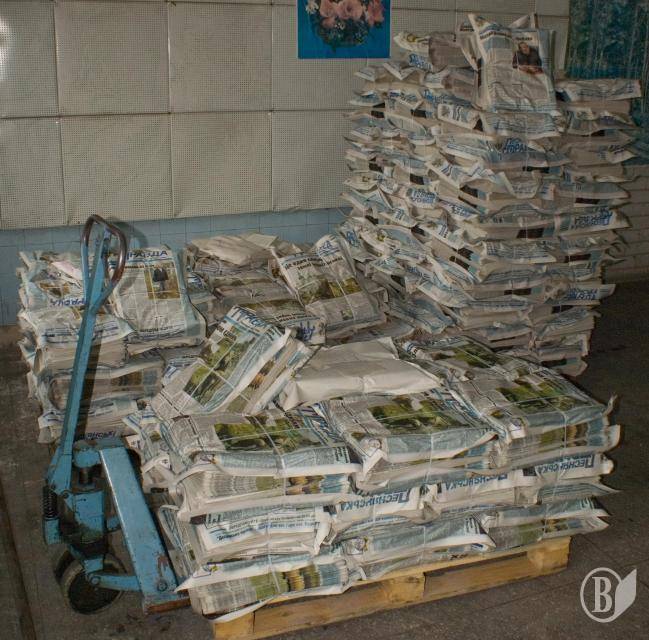 Фотографии настоящей бумажной горы, которую составляют тысячи и тысячи экземпляров газеты «Деснянская правда», которые покрываются пылью, действительно сделаны на складе типографии. Сразу может возникнуть вопрос: «И что с того, - может, их как раз напечатали и они вот-вот попадут к читателю?» Логично? Вполне.