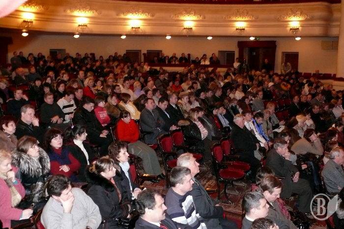 Багатолюдний захід у приміщенні обласного академічного музично-драматичного театру, об’єднав свідомих представників освіти, медицини, науки, культури і мистецтва Чернігівщини на підтримку кандидата у Президенти України Віктора Януковича.