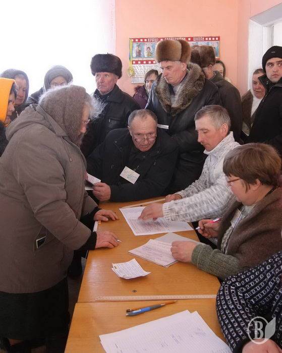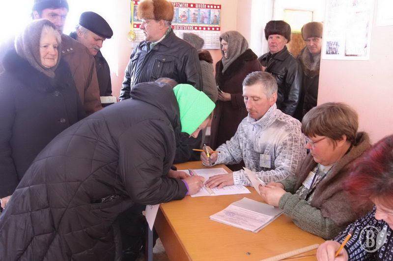 У залі для голосування знаходилося кілька селян з паспортами у руках і посмішками на обличчях. «Як у старі часи» - промовив хтось із членів комісії.