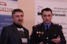Очікувалося, що на прес-конференції виступить начальник УМВС України в Чернігівській області Іван Катеринчук, однак невідкладні справи не дозволили йому зустрітися з представниками мас-медіа. Замість нього про забезпечення правопорядку в області під час другого туру виборів розповів начальник відділу по зв’язках з громадськістю обласного УМВС Сергій Бриль.