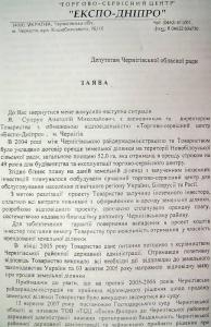 Але все ж таки краще спочатку познайомитись із самим матеріалом – власне, заявою засновника та виконавчого директора товариства з обмеженою відповідальністю «Торгово-сервісний центр «Експо-Дніпро» Анатолія Супруна, яку він адресував народному депутату України Олегу Ляшку. В заяві, зокрема, сказано:
