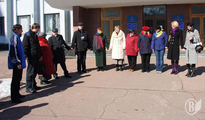 Протестною формою трудового колективу редакції «Нашого краю» став живий ланцюжок з працівників газети, до якого незабаром на знак солідарності приєдналися журналісти з інших ЗМІ Чернігова і області.