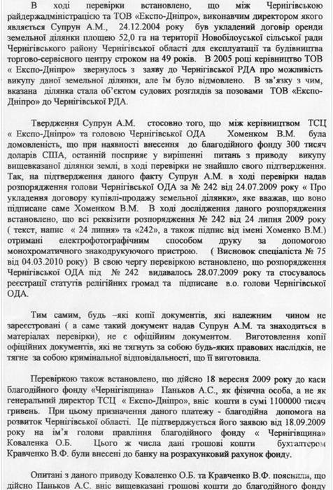 1.03.2010 Информация Черниговской ОГА относительно ситуации вокруг ООО «Торгово-сервисный центр «Экспо-Днепр»