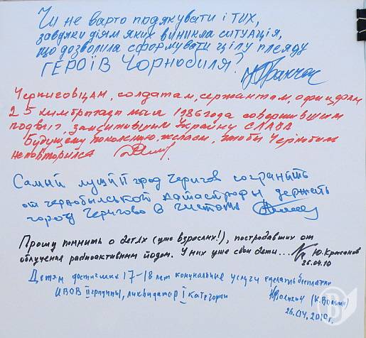 Про події 24-річної давнини, які відбувалися на ЧАЕС, нагадали інформаційні стенди, що їх розмістили біля пам’ятника героям Чорнобиля активісти молодіжної громадської організації „Покоління сильних”. Як зазначив лідер організації Андрій Глаба, молодь не повинна забувати тих людей, які „ціною свого власного життя поклали край цій величезній катастрофі”.