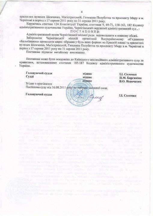 До вашої уваги рішення суду з проводу заборони розміщення наметів-приймалень депутатів у Чернігові, ухвалене сьогодні вночі. Воно уже розміщене в мережі Фейсбук.