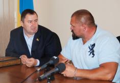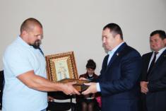 Столичного гостя радо зустріли депутат облради Анатолій Мирошниченко, та голова райдержадміністрації Олег Нестеренко. Останній подарував силачу ікону Іоасафа Бєлгородського, а Анатолій Мирошниченко – оригінальне видання «Біблії».