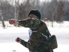 Слід зазначити, що трудність полягає і в тому, що кожен розвідник і снайпер виконує завдання у повному спорядженні. А це – штатна зброя, рюкзак зі спорядженням вагою близько 20 кг та радіостанція Р-159 (15 кг).