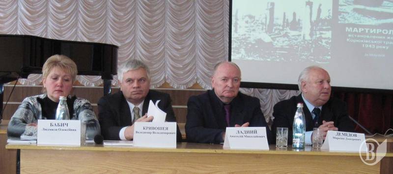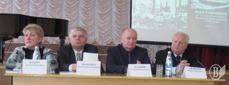 Перший заступник директора Українського інституту національної пам’яті, доктор історичних наук, професор Володимир КРИВОШЕЯ привернув увагу до фундаментальних засад формування політики національної пам’яті: тріумфу і трагедії. Такою є загальноприйнята у цивілізованому світі формула збереження минулого державних націй. Саме за цією логікою і розгортається робота зі вшанування жертв Корюківської трагедії 1943 р.: знання та оцінка трагедії, а далі тріумф життя – збереження пам’яті у відродженій Корюківці. Один із серйозних кроків – видання мартирологу.