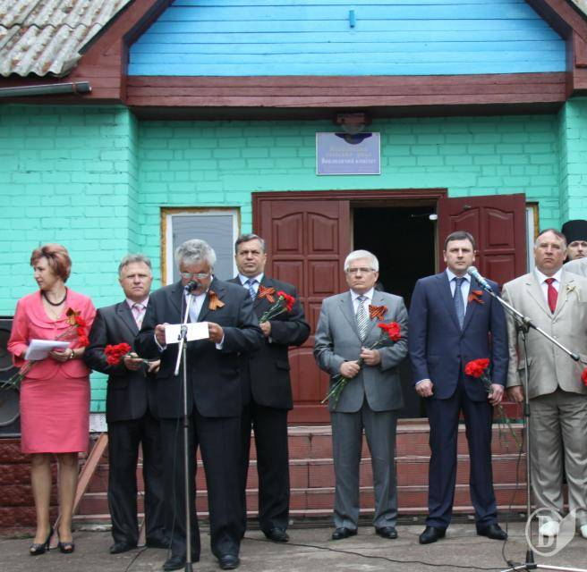 Урочистості, на які зібралася сільська громада, розпочалися не з оголошення прізвищ загиблих односельчан, а жертводавців та присутніх чиновників: першого заступника голови парламентської фракції Партії регіонів у Верховній Раді Михайла Чечетова,першого заступника голови Чернігівської обласної державної адміністрації, керівника фракції Партії регіонів в Чернігівський облрадіСтаніслава Прокопенка, голови райради Михайла Литвина, голови районної адміністрації Миколи Кудрика, депутата обласної ради Віктора Лазаря, голови районної організації ветеранів, генерал-майора запасу Анатолія Гапича.