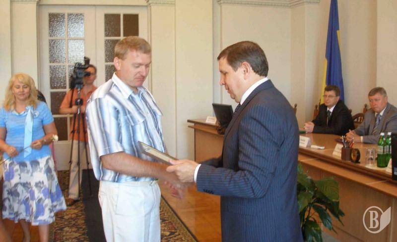Микола Петренко, голова обкому профспілки працівників державних установ, вручив відзнаки працівникам державних установ та тьом лауреатам ІІ туру конкурсу «Кращий державний службовець».