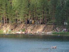 Вздовж іншого берега вирубані ряди молодих сосен. Сосни були штучно насаджені після завершення роботи у кар'єрі, котрий і став згодом озером. Вирости їм не дали. За словами Надії Авраменко, розчистка лісу виконана уздовж лінії електропередачі.