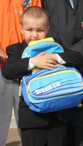 Усім першокласникам урочисто вручили новенькі портфелі зі шкільним приладдям від Благодійного Фонду «Єдиний світ».