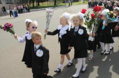 Свято Знань у селі Хмільниця, Чернігівського району розпочалося з подарунків: від імені Чернігівської облдержадміністрації ключі від нового шкільного автобуса школі вручив перший заступник голови Чернігівської ОДА Станіслав Прокопенко.