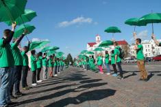 Молоді люди у зелених футболках та із зеленими парасольками пройшли від Валу до «Мега-центру» та знов повернулися на Красну площу Чернігова з піснями, нагадуючи про елементарне – берегти чистоту: чисту воду, чисту землі, чисті продукти.