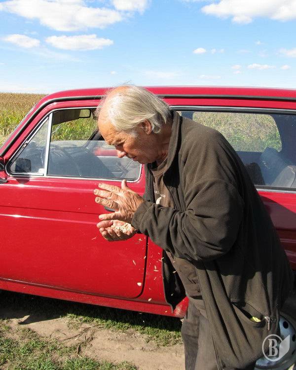 – Що це за качани? В одному має бути 120 г зерна. А тут навіть не повністю запилене, – дійсно, ряди зернят неповні. Качани летять на заднє сидіння авто. – Потім облущу й зважу.
