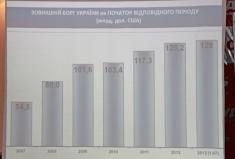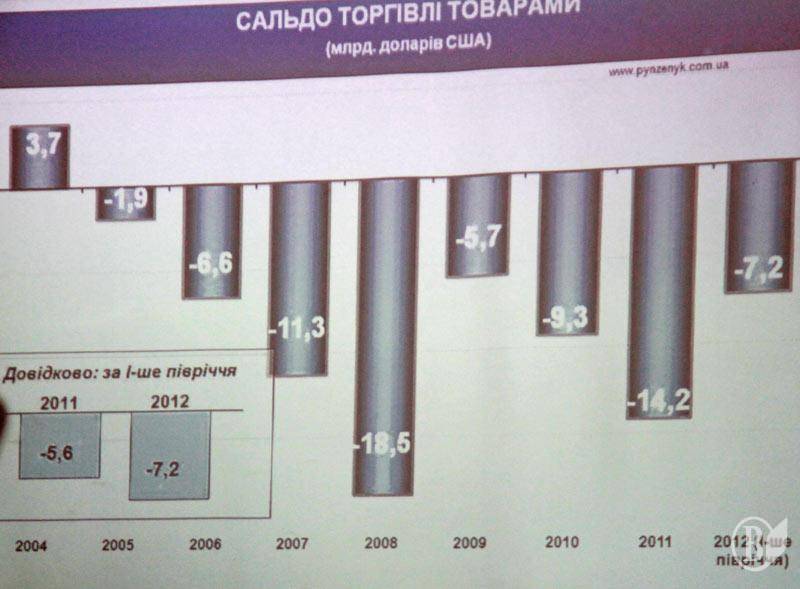 - Порушується платіжний баланс в Україні , - сказав він, - зростають і борги нашої держави. Це головний біль України. Ми витрачаємо більше, ніж заробляємо. У нас утворюється бюджетна дірка.