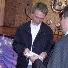 Після зустрічі автографи роздавали і виконавець, і кандидат. Останній – на власній книзі «Нова енергія», надрукованій видавництвом «Фоліо» ще 2009-го року.