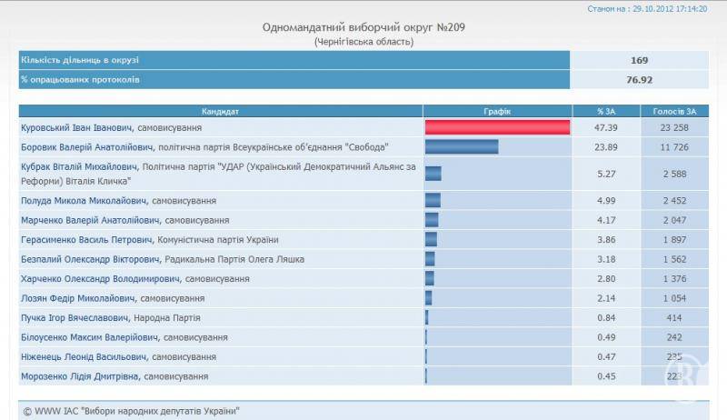У відсотковому співвідношенні на 17:14 29 жовтня вимальовується така картина: