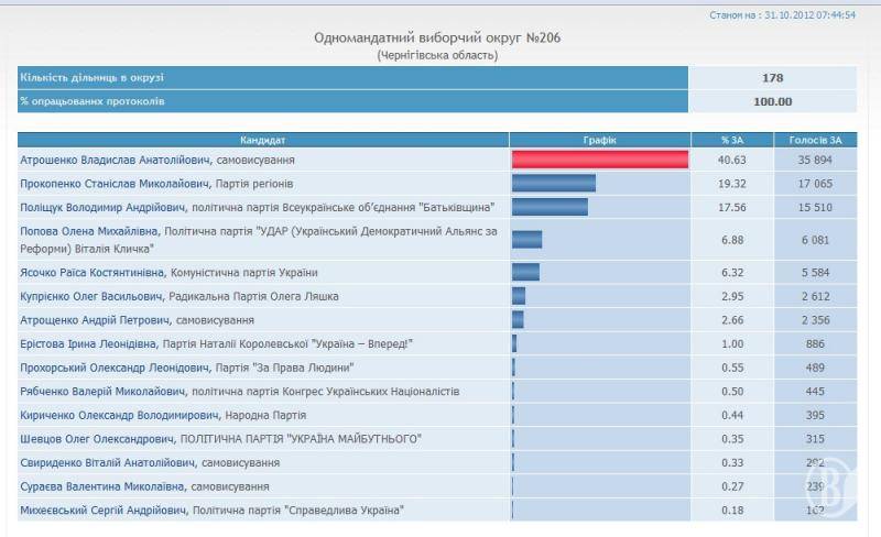 29.10.2012 Самовисуванець Атрошенко «побив» владу Прокопенка (результати). Оновлено