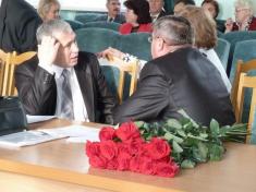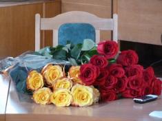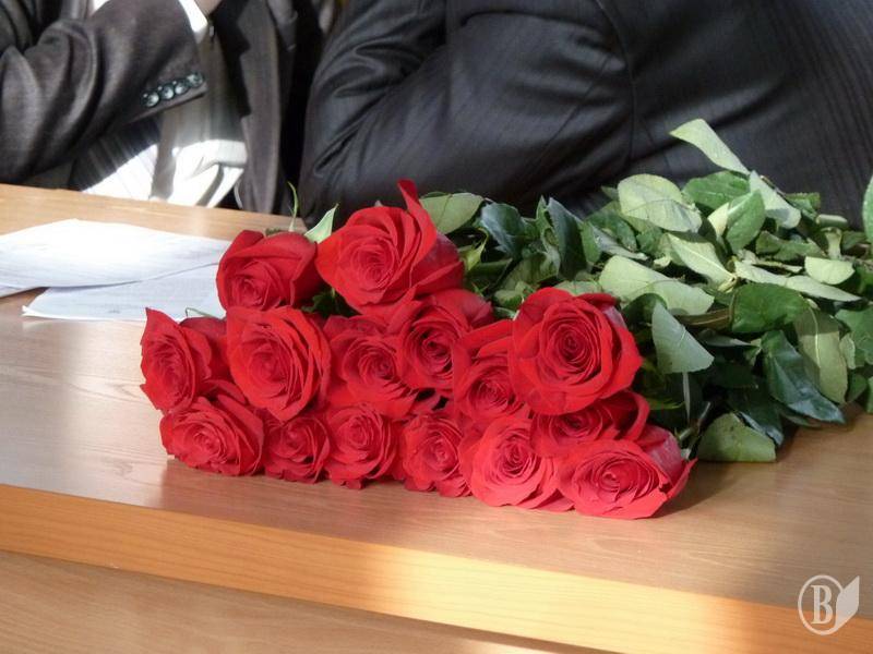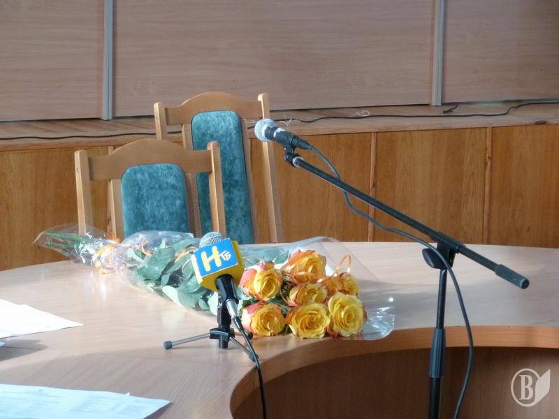 Перед початком сесії Ніжинської міської ради на стіл міському голові Михайлу Приходьку поклали букет жовтих троянд.