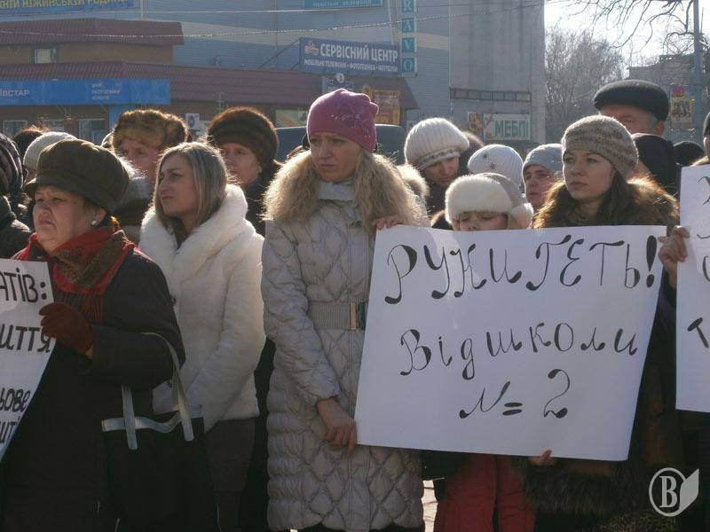 Учні, батьки та вчителі Ніжинської ЗОШ І-ІІІ ст. №2 в середу 6 березня вийшли на мітинг до Ніжинської міської ради.