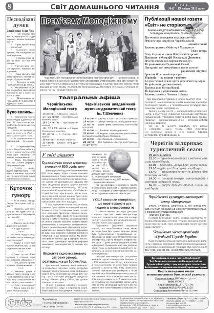 Вийшов друком 17-й номер газети «Світ-інфо», яку видає в Чернігові журналіст Петро Антоненко.