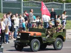 Від Красної площі (знову ж таки, традиційно) до Меморіалу Слави на Болдиній горі рушила механізована колона, яка складалася з радянського БТР, трьох військових джипів часів війни (один з них – знаменитий американський «Willys») та радянських відкритих УАЗиків.