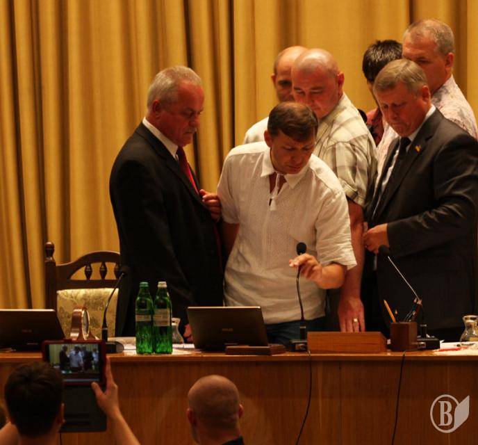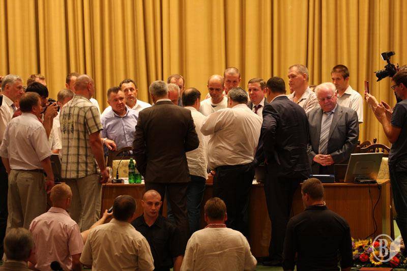Коли ж Ляшко зайшов до зали обласної ради, то через хвилин 15 захопив трибуну і почав виганяти Партію регіонів з Чернігівщини, а губернатора Хоменка - з області.