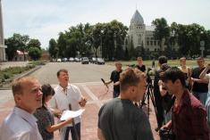 На мітинг, організований Олегом Валерійовичем та його партією зібралося близько 150 чоловік.