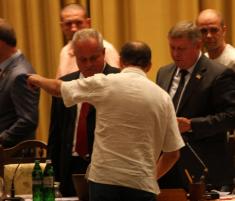Напоровся на депутатів і охоронців, які вийшли із-за сцени та піднялися із залу.