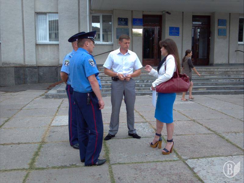 Так само без ентузіазму натовп журналістів, працівників міліції і СБУ (в т.ч. «з області») у супроводі зівак посунув «брати» райвідділок міліції. Перед райвідділком Ірму зустріли депутати міської ради, з якими пані Ірма трішки посперечалася. А за кілька хвилин покрокувала на ґанок райвідділу, зайшла всередину і стала вимагати господаря закладу пана Шепілова, аби поставити йому 2 основних питання. Перше – про кришування міліцією наркодилерів і про заволодіння квартирою ніжинської сім’ї з метою її перепродажу.
