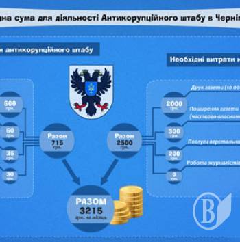 Необхідна сума для діяльності Антикорупційного штабу в Чернігові – 3215 грн. на місяць.