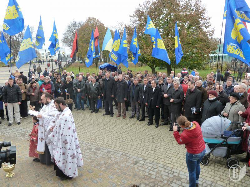 Захід розпочався молитвою панотців, яку очолив настоятель храму Різдва Богородиці, протоієрей о. Віталій Юрочко. Після освячення знака перед присутніми виступили народні депутати, а також очільники місцевих осередків «Свобода».