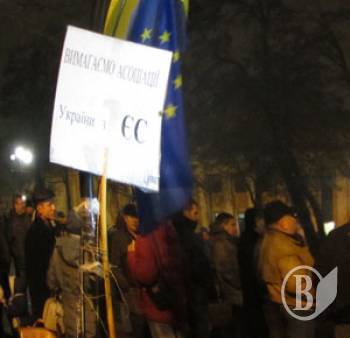 "Около 150 человек 25 ноября митинговали в Чернигове с требованием подписать соглашение об ассоциации с Европейским Союзом.