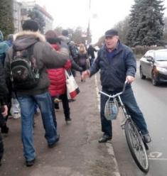 Після наполегливих скандувань до демонстрантів приєдналось кілька десятків студентів агротехнічного інституту та їх викладачі. І колона рушила на центральну площу під будівлю міськвиконкому.