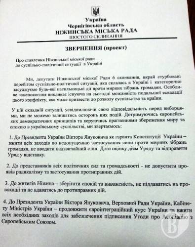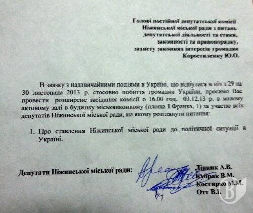 Депутаты Нежинского городского Совета срочно собрались 3 декабря на специальное расширенное заседание комиссии, чтобы выразить свое отношение к общественно-политической ситуации в Украине.
