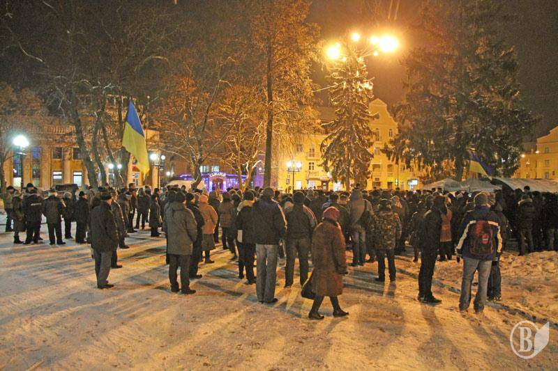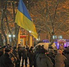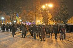 Ведучий мітингу розповів, що українські телеканали уже про це розповіли. Але якщо чиновники від освіти будуть тероризувати хлопця за його погляди, то активісти Євромайдану будуть пікетувати школу , управління освіти та органи влади.