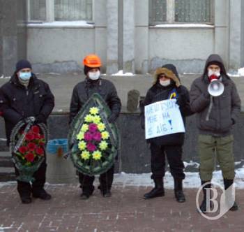 Акция «Похороны демократии» двинулась к центру города. В частности, к офисам Партии регионов.