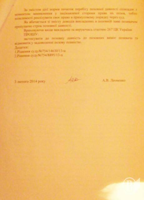 Розгляд справи у суді призначили на 3 лютого 2014 року. У суді Андрій Леоненко подав заяву про застосування строків позовної давності у 3 роки згідно ч. 4 ст. 267 ЦК України. Але представник Приватбанку стверджувала, що срок дії кредиту не обмежений і продовжуєтся автоматично до повного його погашення.